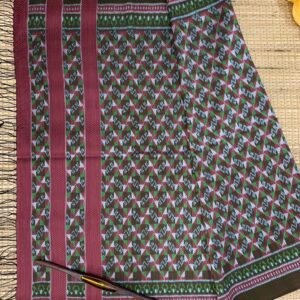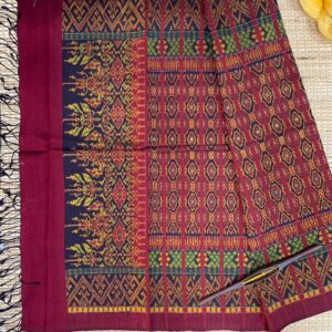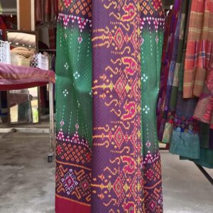 ซิ่น ผ้าไหมมัดหมี่ ไหมแท้ 6ตะกอ มีหน้านาง ชายครุย ขนาด 1×2เมตร สีเขียว-แดง รหัส L9A-AA-M012