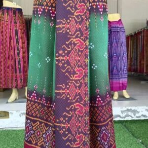 ซิ่น ผ้าไหมมัดหมี่ ไหมแท้ 6ตะกอ มีหน้านาง ชายครุย ขนาด 1×2เมตร สีเขียว รหัส L9A-ND-0213670747