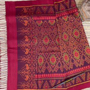 ซิ่น ผ้าไหมมัดหมี่ ไหมแท้ 6ตะกอ มีหน้านาง ชายครุย ขนาด 1×2เมตร สีแดง รหัส L9A-AA-M037