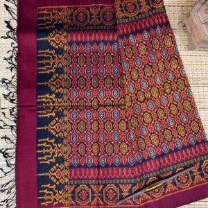 ซิ่น ผ้าไหมมัดหมี่ ไหมแท้ 6ตะกอ มีหน้านาง ชายครุย ขนาด 1×2เมตร สีแดงเม็ดมะขาม รหัส L9A-AA-M009