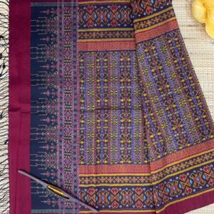 ซิ่น ผ้าไหมมัดหมี่ ไหมแท้ 6ตะกอ มีหน้านาง ชายครุย ขนาด 1×2เมตร สีเม็ดมะขาม รหัส L9A-AA-M030