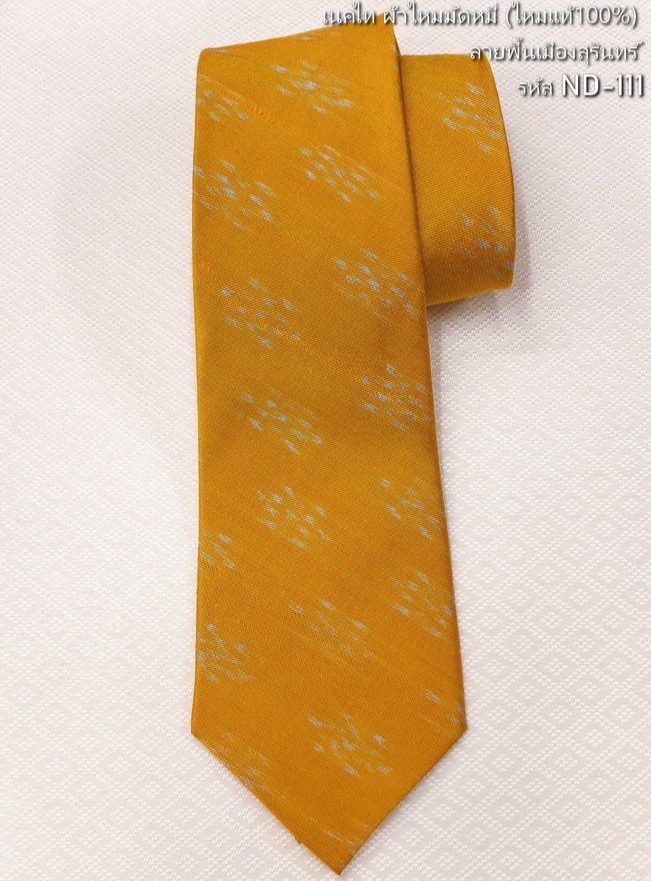 เนคไทผ้าไหม ลายพื้นเมือง สีเหลือง รหัส ND-111