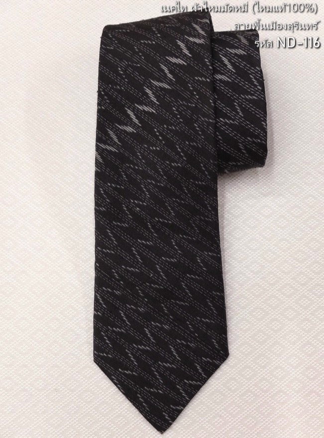 เนคไทผ้าไหม ลายพื้นเมือง สีดำ รหัส ND-116
