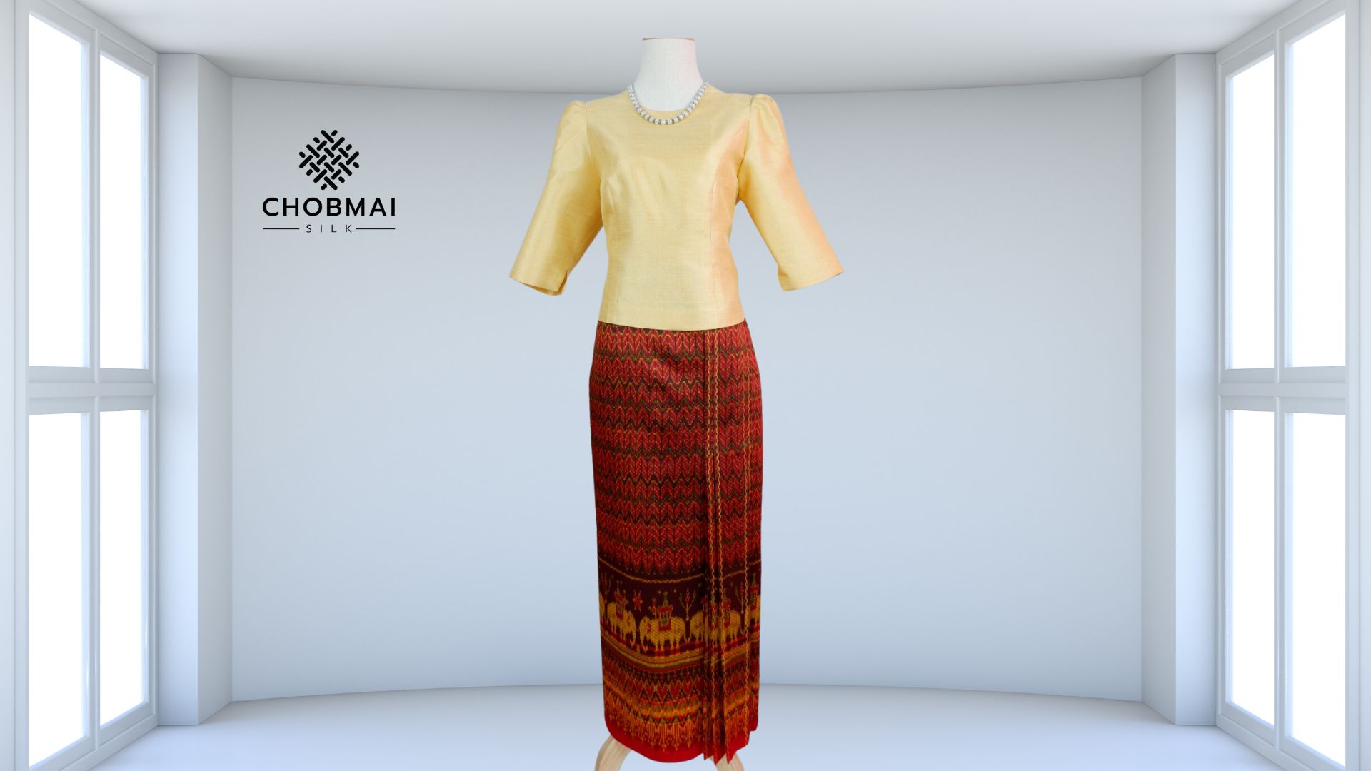 แบบตัดชุด แยกชิ้น เสื้อ+กระโปรง ชุดไทยเรือนต้น ผ้าไหม (ไม่รวมผ้า) รหัส CUT-PT10276615