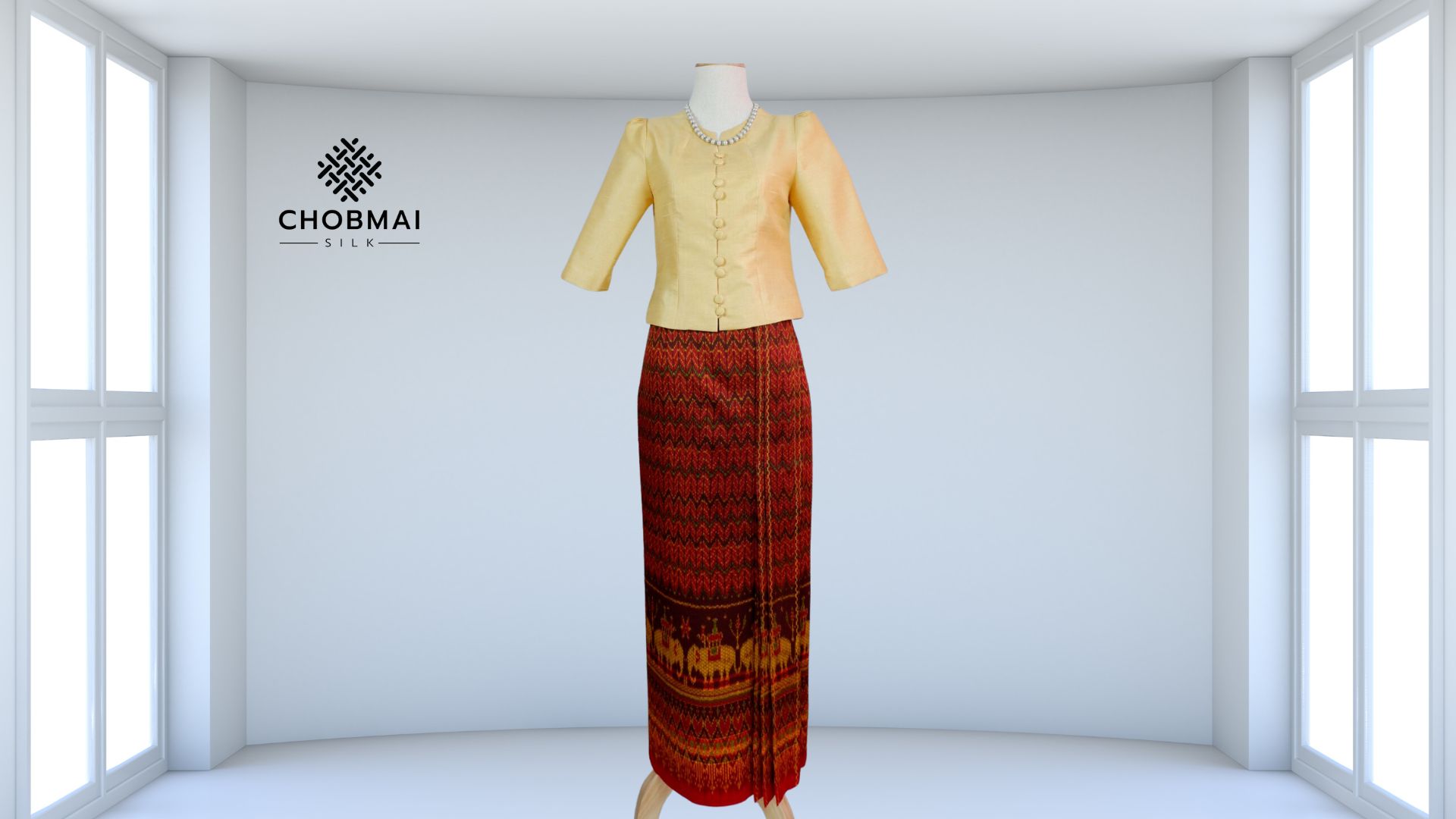 แบบตัดชุด แยกชิ้น เสื้อ+กระโปรง ชุดไทยเรือนต้น ผ้าไหม (ไม่รวมผ้า)รหัส CUT-PT10276616