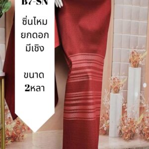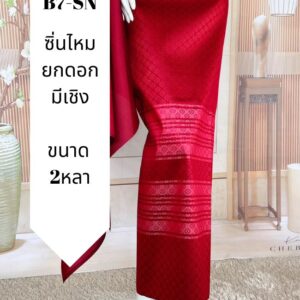 ผ้าคลุมไหล่ ผ้าไหมพื้นเมือง ทอยกดอก 5ตะกอ ขนาด 65×200ซม.พื้นสีแดง รหัส L5A-RT-05286711442