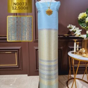 ซิ่น ไหมยกใหญ่ลำพูน (ผ้าลาย 2.4เมตร) สีฟ้ายกดอกดิ้นทอง รหัส N11-29-N0073