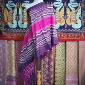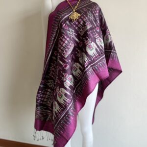 ผ้าคลุมไหล่ผ้าไหม สีธรรมชาติ ทอยกดอก 6ตะกอ ขนาด 60×200ซม.มีหน้านางชายครุย พื้นสีม่วง รหัส L4BN-ND-05266721312