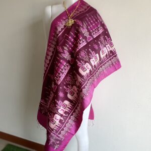 ผ้าคลุมไหล่ผ้าไหม ไหมแท้ 6ตะกอ ยกดอกลูกแก้ว มีหน้านาง ชายครุย ขนาด 60×200ซม. พื้นสีม่วงชมพู รหัส L5A-NY-0119676