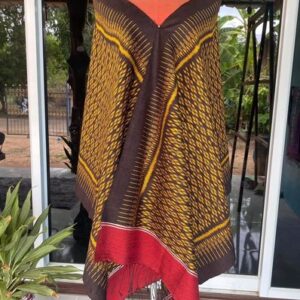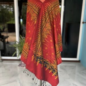 ผ้าคลุมไหล่ผ้าไหม ไหมแท้ 6ตะกอ ยกดอกลูกแก้ว มีหน้านาง ชายครุย ขนาด 60×200ซม. พื้นสีแดง รหัส L5A-NY-0119675
