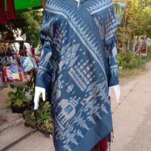 ผ้าคลุมไหล่ผ้าไหม ไหมแท้ 6ตะกอ ยกดอกลูกแก้ว มีหน้านาง ชายครุย ขนาด 65×200ซม. พื้นสีฟ้าอมเทา รหัส L5E-ND-01276716133