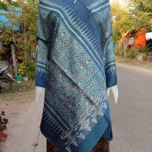 ผ้าคลุมไหล่ผ้าไหม ไหมแท้ 6ตะกอ ยกดอกลูกแก้ว มีหน้านาง ชายครุย ขนาด 65×200ซม. พื้นสีฟ้าคราม รหัส L5A-ND-01276716131