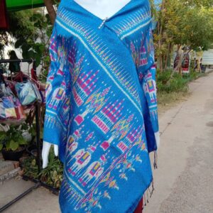 ผ้าคลุมไหล่ผ้าไหม ไหมแท้ 6ตะกอ ยกดอกลูกแก้ว มีหน้านาง ชายครุย ขนาด 65×200ซม. พื้นสีฟ้า รหัส L5E-ND-01276716132